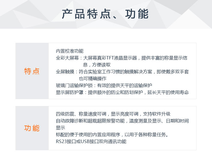 1. 全彩大屏幕:大屏幕真彩TFT液晶顯示器,提供豐富的稱量顯示信息,方便讀取。