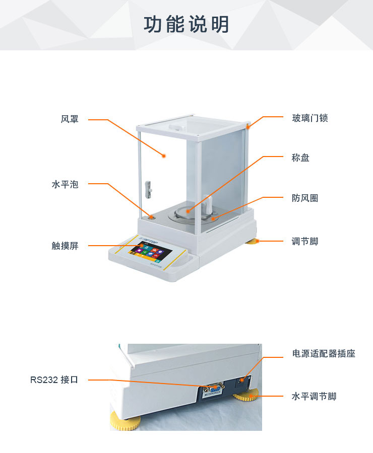 7. 玻璃門運輸保護鎖:有效的提供天平的運輸保護。